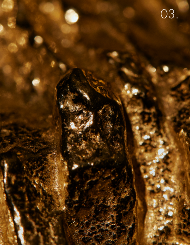 De esa relación entre materia y tiempo surge una investigación enfocada en piedras naturales ligadas al territorio argentino, que impulsa la colaboración con Cristián Mohaded. Su práctica integra materialidad, saberes artesanales y pensamiento contemporáneo, tendiendo puentes entre lo ancestral y lo actual. En paralelo, se desarrolla una exploración sobre metales y reflejos, analizando cómo dorados, cobres y platas pueden incorporarse con sutileza en encuentros y detalles arquitectónicos. A esta búsqueda se suman Celina Saubidet y Marina Molinelli Wells, de Cabinet Óseo, cuyas piezas traducen formas orgánicas en volúmenes metálicos de intensa presencia material. Superficies pulidas y pátinas precisas transforman los metalizados en materia expresiva que enriquece la experiencia espacial.